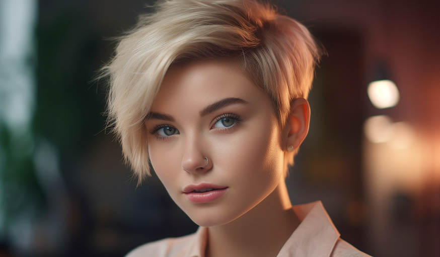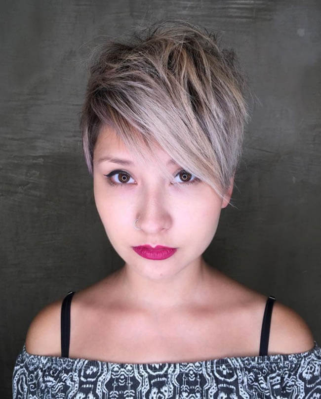 Модная стрижка пикси станет отличным украшением, если правильно расставить акценты. Идеально будет смотреться удлиненная челка на бок. Самое главное, чтобы над ушами, возле висков оставалась минимальная длина. Осветление кончиков или элементов челки поможет вытянуть овал.