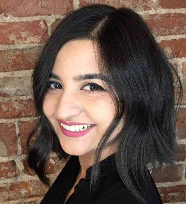 Круглолицым дамам стоит остановиться на удлиненном бобе или бобе. Основная линия стрижки должна быть массивной, пробор набок. Элегантным дополнением станет удлиненная или косая челка. Асимметричные линии выгодно скорректируют овал лица, приблизит его к идеальному овалу. Также можно поэкспериментировать с короткими челками, но их необходимо тщательно профилировать.