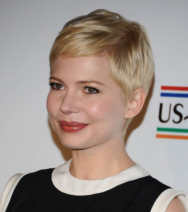 Прямая челка создает эффект утяжеления лица. Экстравагантная пикси – одна из ультракоротких стрижек, которые подходят круглолицым очаровашкам. Благодаря открытой шее она удлиняет и вытягивает лицо.