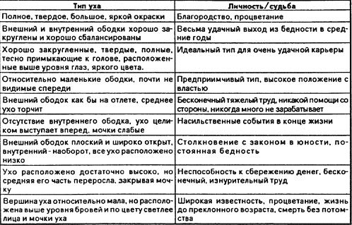 Примеры сочетания вышеописанных признаков: физиогномика по ушам