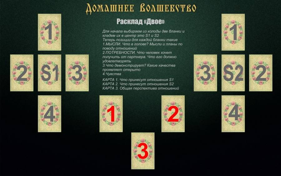 Просматривая канал обмена таро, вы можете увидеть схемы раскладов на различные темы, например, расклад «Двойка» на любовь: