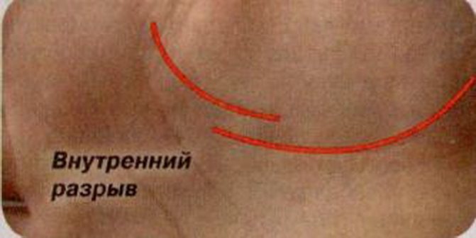 Этот тип разрыва, обычно располагающийся около большого пальца, считается довольно редким аномальным проявлением. Знак предупреждает о проблемах, которые возникнут на определенном этапе жизненного цикла. Субъект должен мобилизовать внутренние ресурсы, чтобы выйти из сложной ситуации, любовь близких поможет вернуться к спокойствию привычного образа жизни.