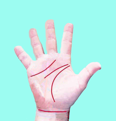 Как правило, обладатели философской руки имеют длинную слегка наклонную линию ума и развитую линию судьбы.
