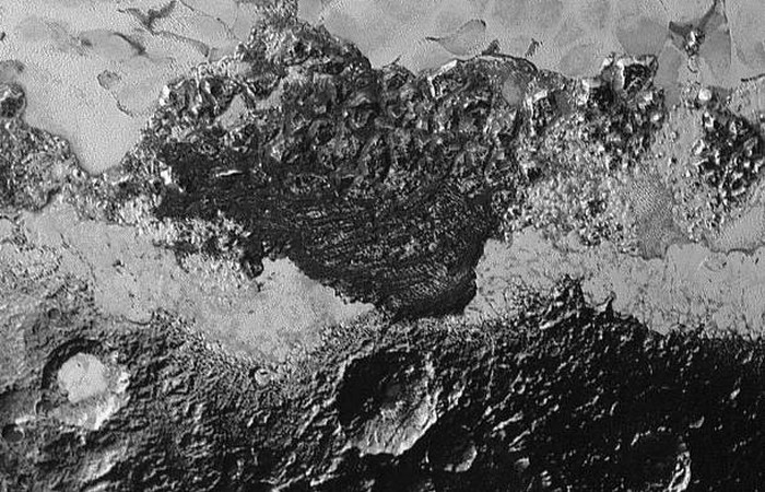 Этот снимок иллюстрирует невероятное разнообразие геологических форм рельефа на поверхности карликовой планеты.