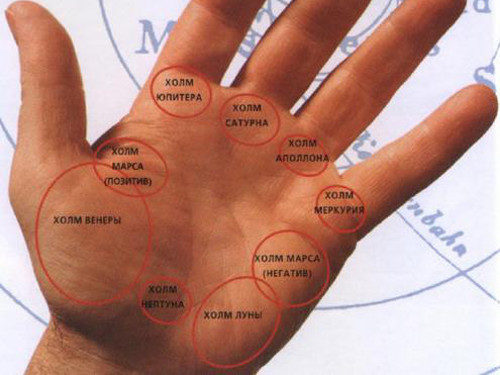 Выпуклости, которые можно легко увидеть на ладони, соответствуют каждой правящей планете. Считается, что те, кто наделен отметинами на ладонях людей, очень трудолюбивы, а также могут изменить свою судьбу, благодаря большой силе воли.