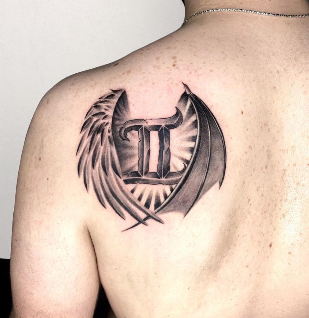 Рисунок в этом месте делает характер сильным. Человек с татуировкой знака зодиака Близнецы на плече сможет противостоять трудностям в будущем. Это отличный мужской вариант.