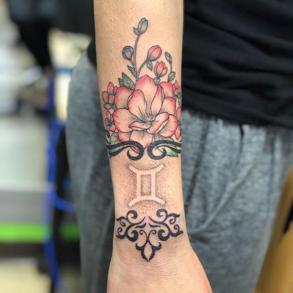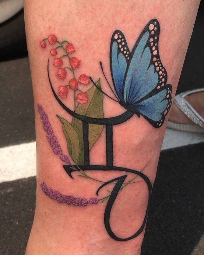 Довольно часто встречаются татуировки этого знака зодиака с добавлением крыльев. В первую очередь крылья несут в себе символ раскрепощения и свободы. Яркие цветочные орнаменты придадут татуировке со знаком Близнецов характер и динамичность. Такой рисунок на теле точно добавит обладательнице индивидуальности. Тату идеально подойдет девушкам, которые обладают широким кругозором и всегда стремятся к достижению поставленных целей.