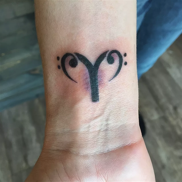 Кроме того, что этот знак зодиака символизирует баран, для представления существует знак «бараньи головы с двумя рогами». Хотя символ довольно простой и маленький, эта татуировка Овна показывает значение самым ясным образом.