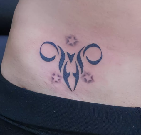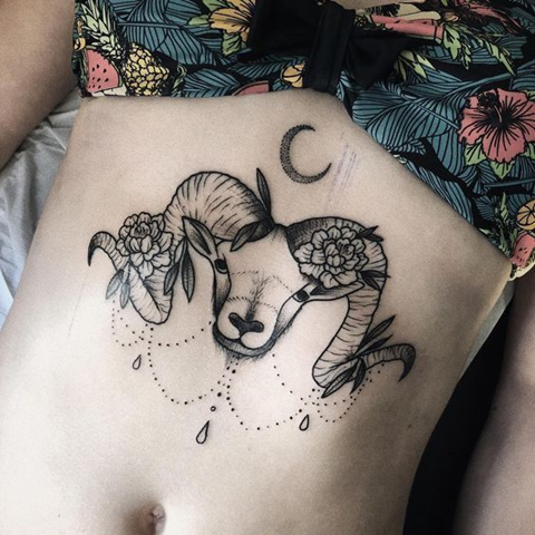 Хорошее место для татуировки зодиака. Как правило, девушки делают тату барана на левой или правой стороне живота, очень редко посередине.