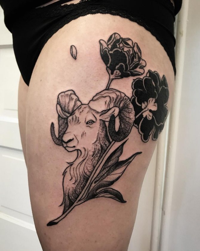 Самая красивая татуировка для женщины-Овна – это изображение животного в сочетании с цветами, ведь такой дизайн выглядит романтично и притягательно. Розы добавят предмету страсти, пионы — изысканности, а лотосы — загадочности.