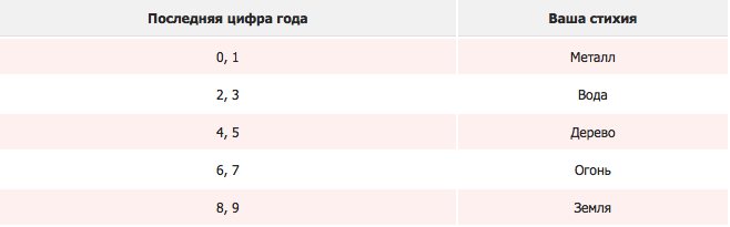 Обратите внимание: если ваш день рождения приходится на январь, то год нужно брать из предыдущего, который указан в документах, потому что по китайскому календарю начало нового года отмечается позже. Тем, кто родился в феврале, для расчета элемента по дате рождения поклонников также необходимо уточнить, не приходилась ли их дата рождения на предыдущий год.
